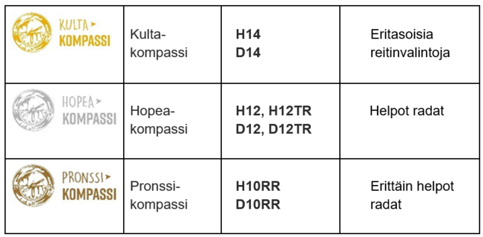 | Kultakompassi | H14, D14 | 3.1 km | 9 |