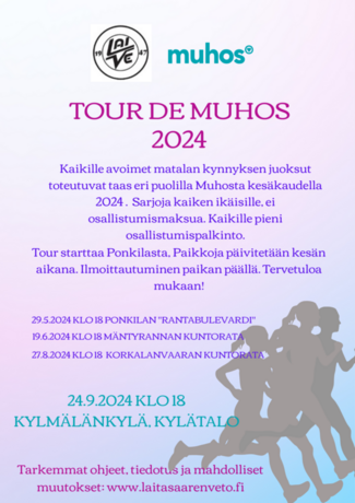 Kaikille avoimet matalan kynnyksen juoksut toteutuvat taas eri puolilla Muhosta kesäkaudella 2024.